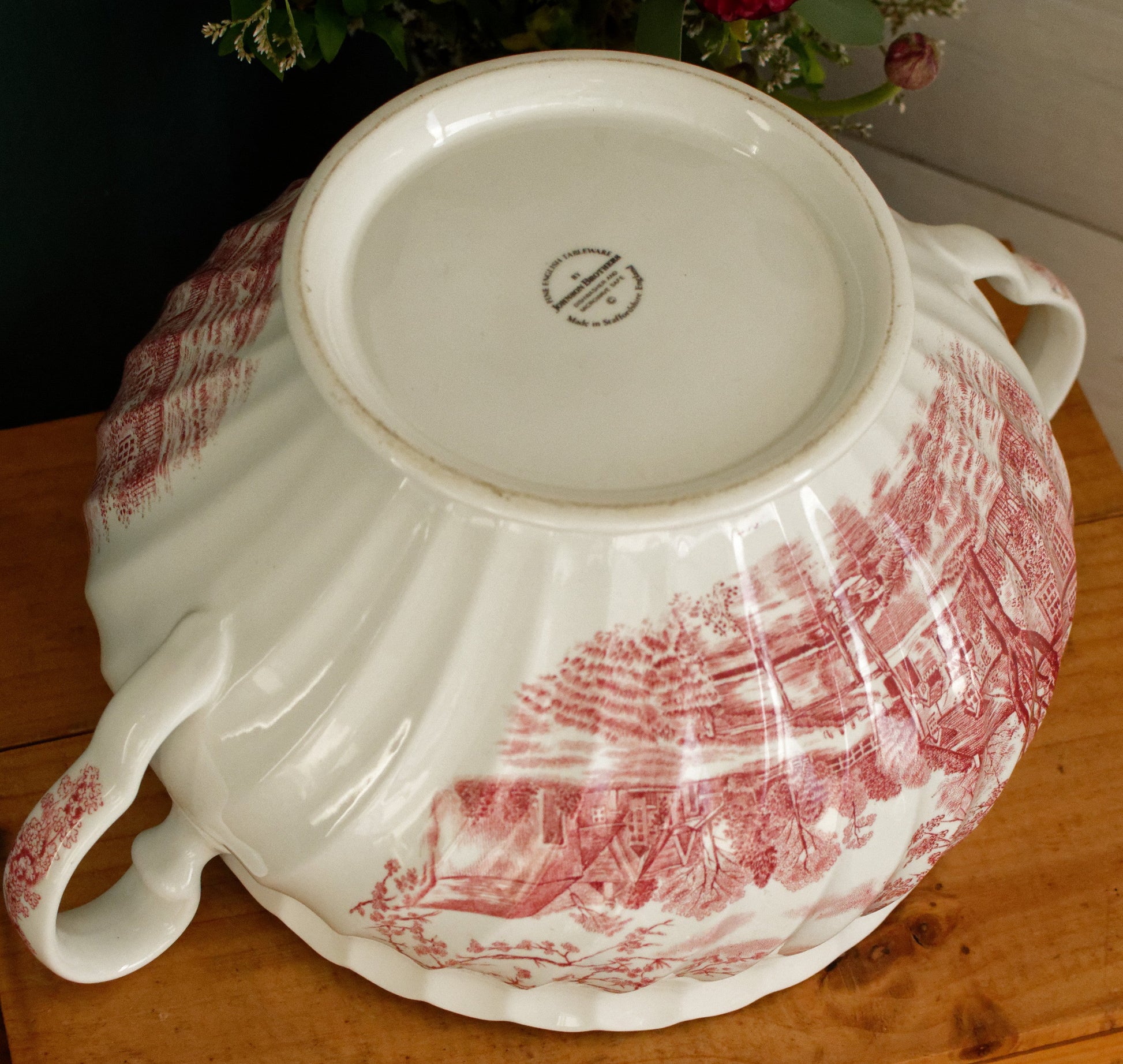Chaque pièce est estampillée « Scènes de diligence fabriquées en Angleterre par Johnson Bros Ironstone Hunting Country »