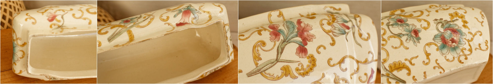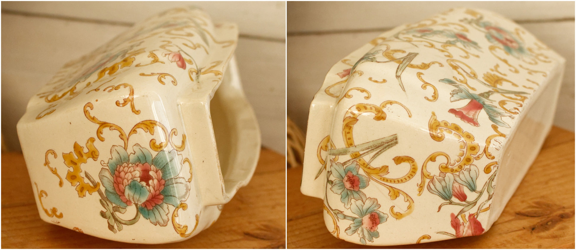 Faienceries D'Onnaing NORD France ~ Français vintage BARBOTINE Ironstone Grand Pot de Jardin ~ Surface en relief peinte à la main