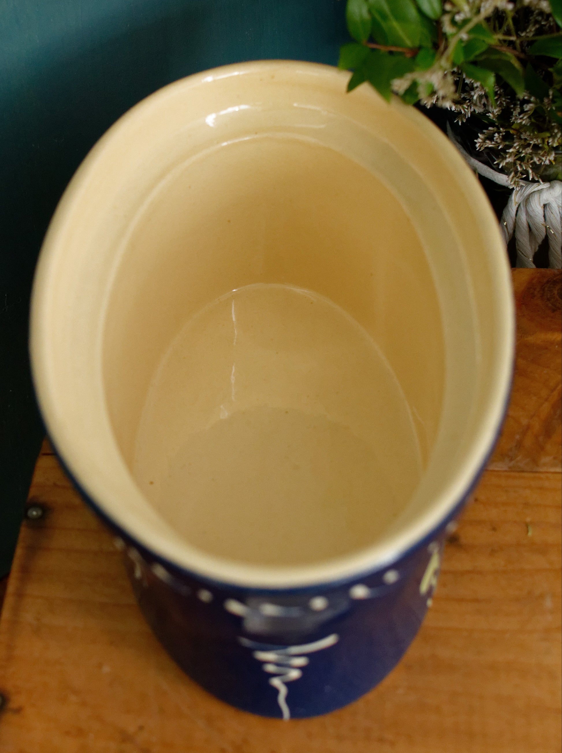 Belle Terrine de Foie Gras Ovale Antique Vintage Français avec couvercle - La Bourguignonne - Fabriquée en France. Cette Terrine de Pâté en Terre Cuite en Grès émaillé (Tureen)/Tureen de Casserole Rustique avec Couvercle était destinée à préparer le foie de canard ou d'oie au four dans des pots de différentes tailles en fonction de la quantité que vous servez. En France, le pâté de prédilection est son fameux « Foie Gras », à base de foies d'oie. Il y a un petit trou dans le bouton sur le dessus pour laisser sortir la vapeur. Il peut également être utilisé pour conserver et cuire d’autres viandes. La cuisson en Grès donne du moelleux et plus de saveur aux plats. . Casserole à pâté en céramique.