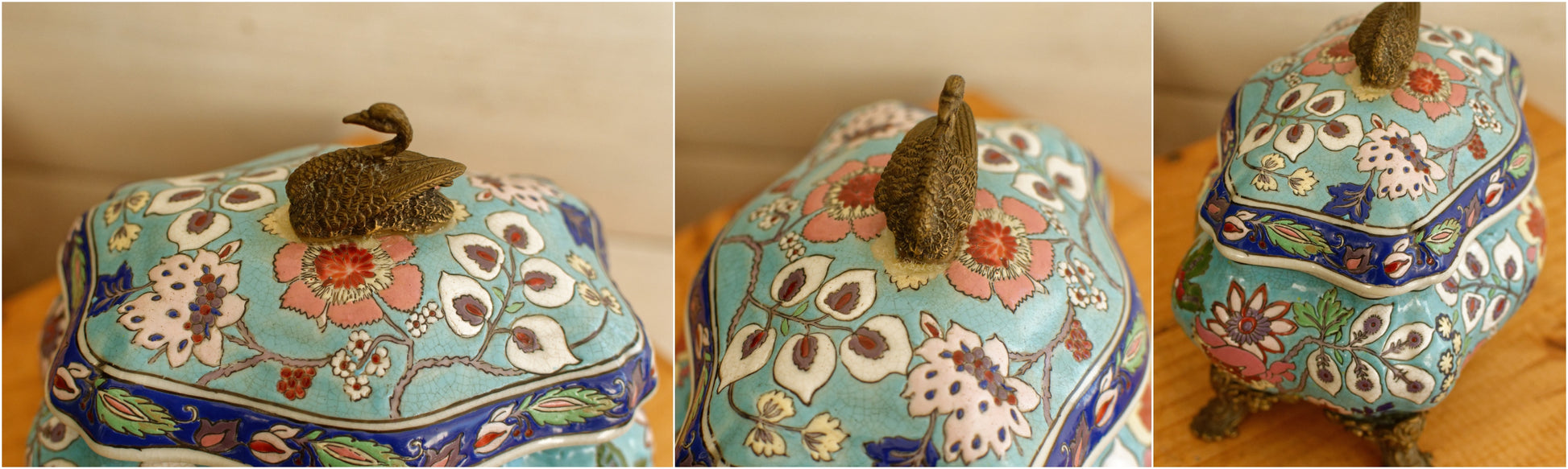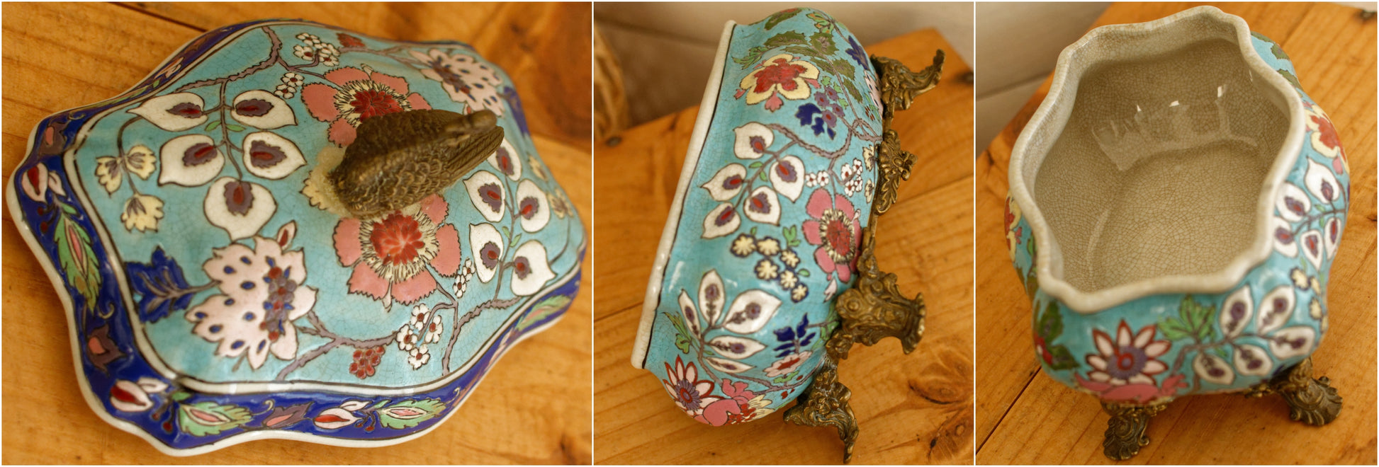 La société française de Faïencerie "Emaux de Longwy" a été fondée en 1798. En 1816, Longwy est vendue à Jean Antoine de Nothomb dont l'épouse était Catherine Boch, fille de Pierre Boch, il existe donc beaucoup de ressemblances entre ces 2 usines. D'après mes recherches sur le tampon en bas, cette pièce date du début des années 1900.