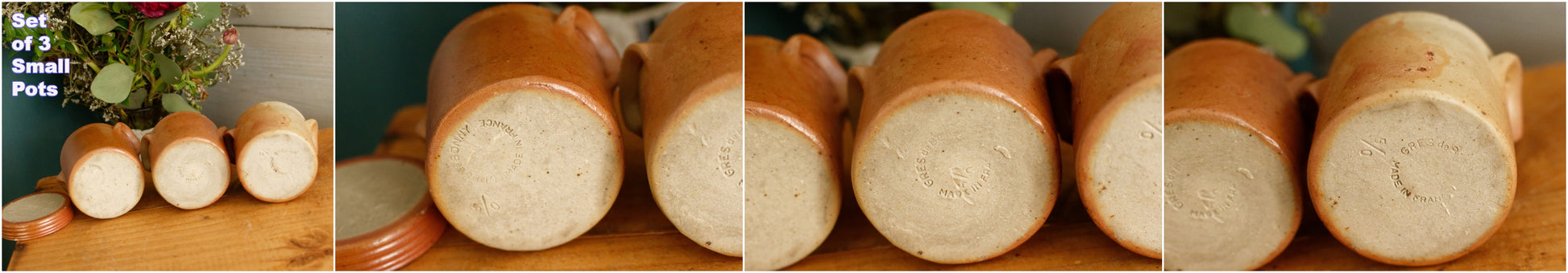 Ravissant pot de style saloir vintage français en grès émaillé, avec couvercle, anses et cache-couvercle. Utilisé en France pour la rillette, le confit et/ou le foie gras. Idéal pour ranger ustensiles de cuisine ou petits objets. Peut également servir de décoration, de pot de fleurs ou de pot à ustensiles.