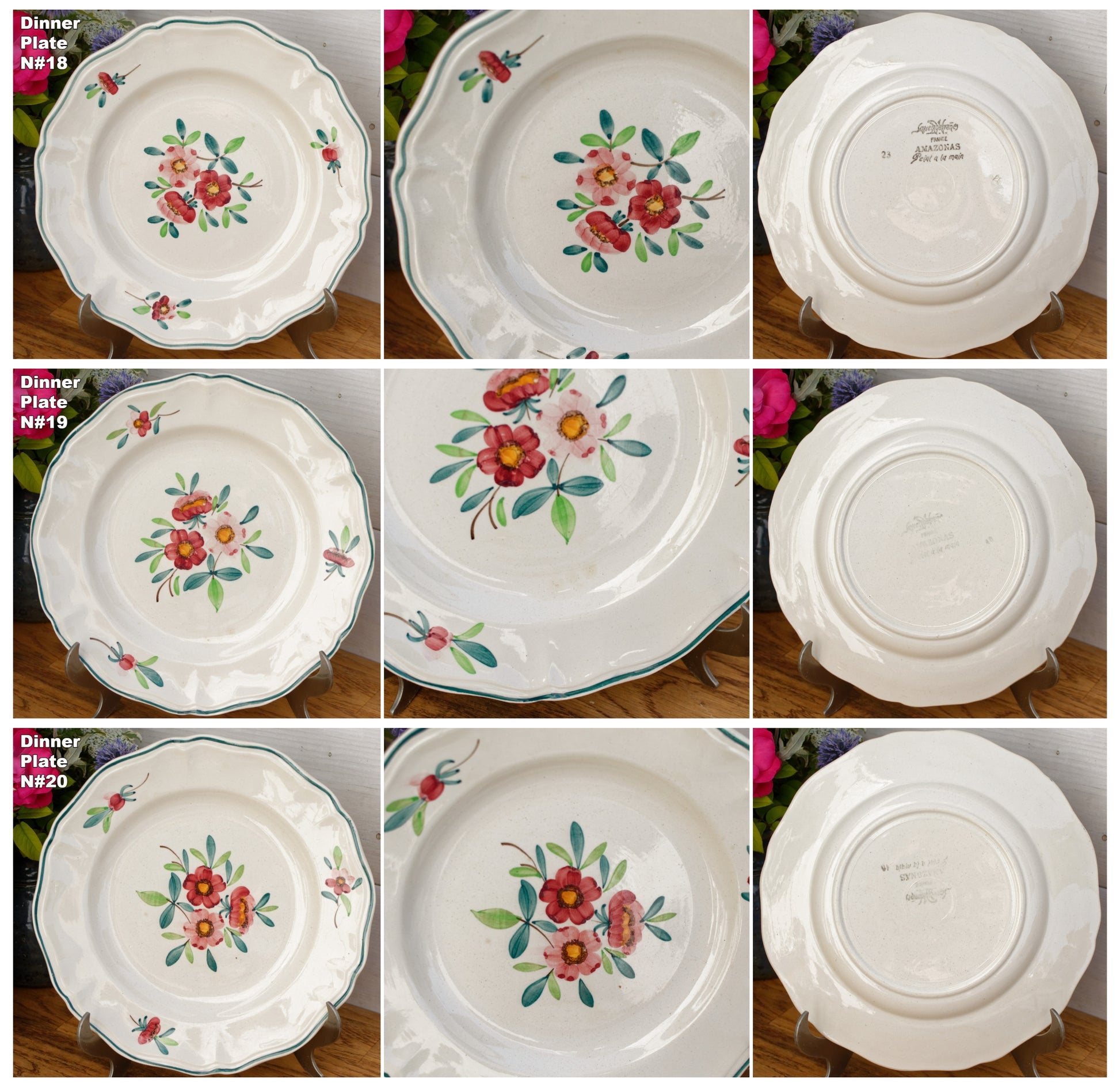 1890/1920年代〜「アマゾナス」SARREGUEMINES Peint a la Main〜フランスアンティーク手描きアイアンストーン花柄ディナープレート〜テール・ド・フェール