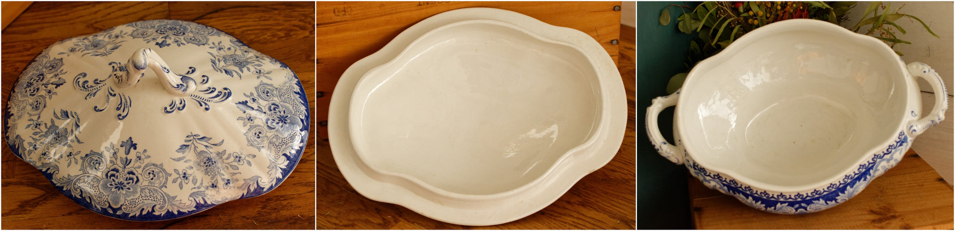 1890年代~「DUGAZON」ボッホ・フレール・ケラミス(BFK)~ベルギーアンティークアイアンストーンブルートランスファーウェアプレート~テール・デ・フェール