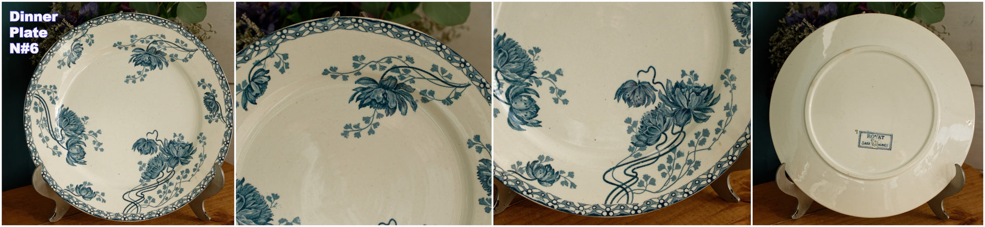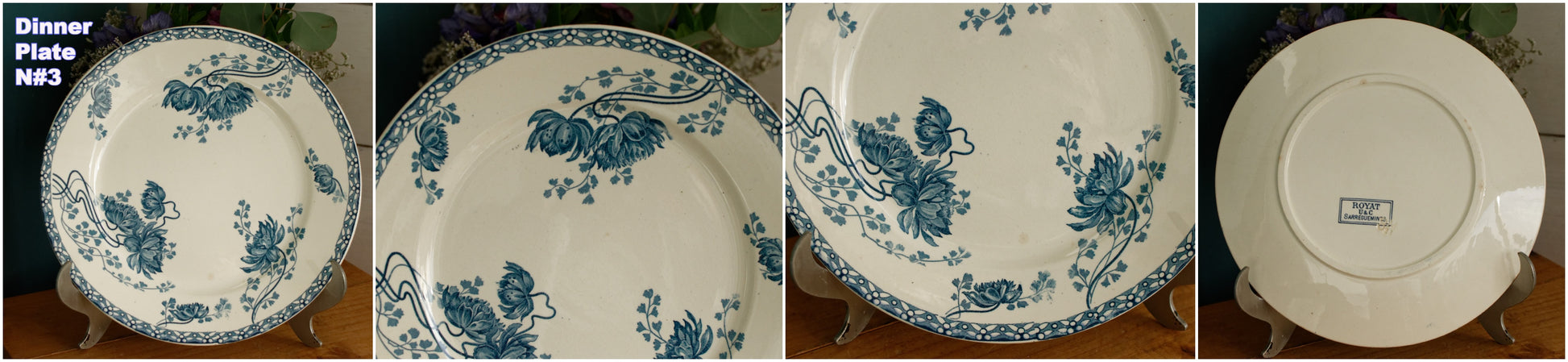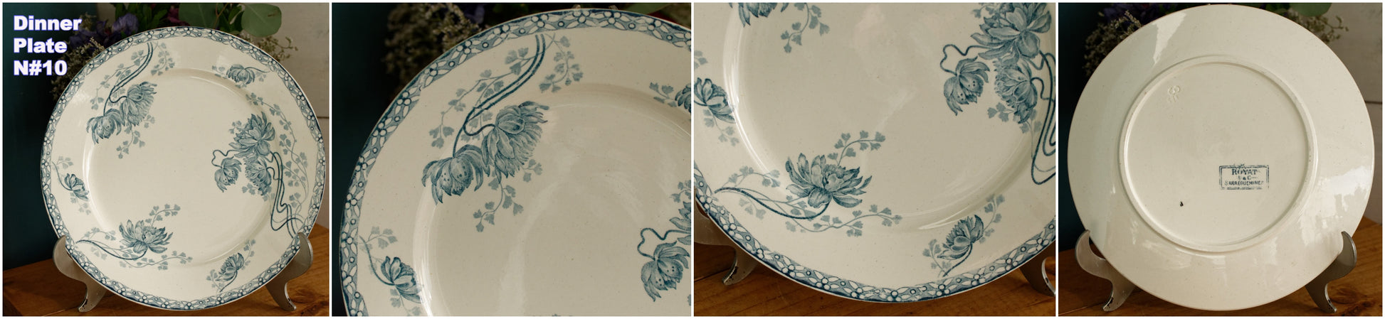 1900年代~「ROYAT」 SARREGUEMINES U&C~フランスアンティーク アイアンストーンブルー トランスファーウェア ディナープレート~テール・ド・フェール