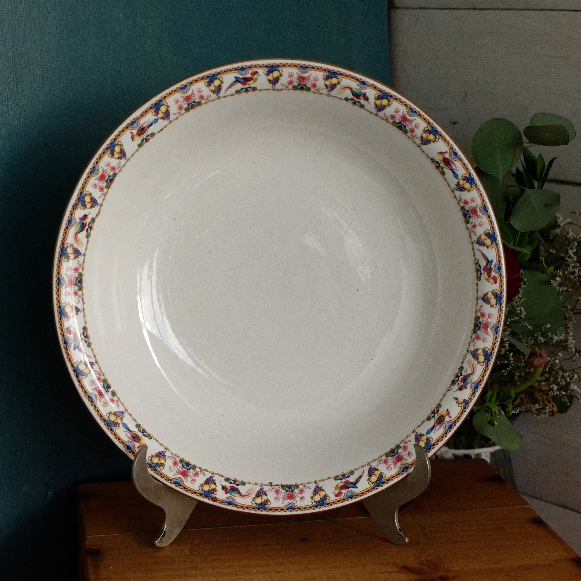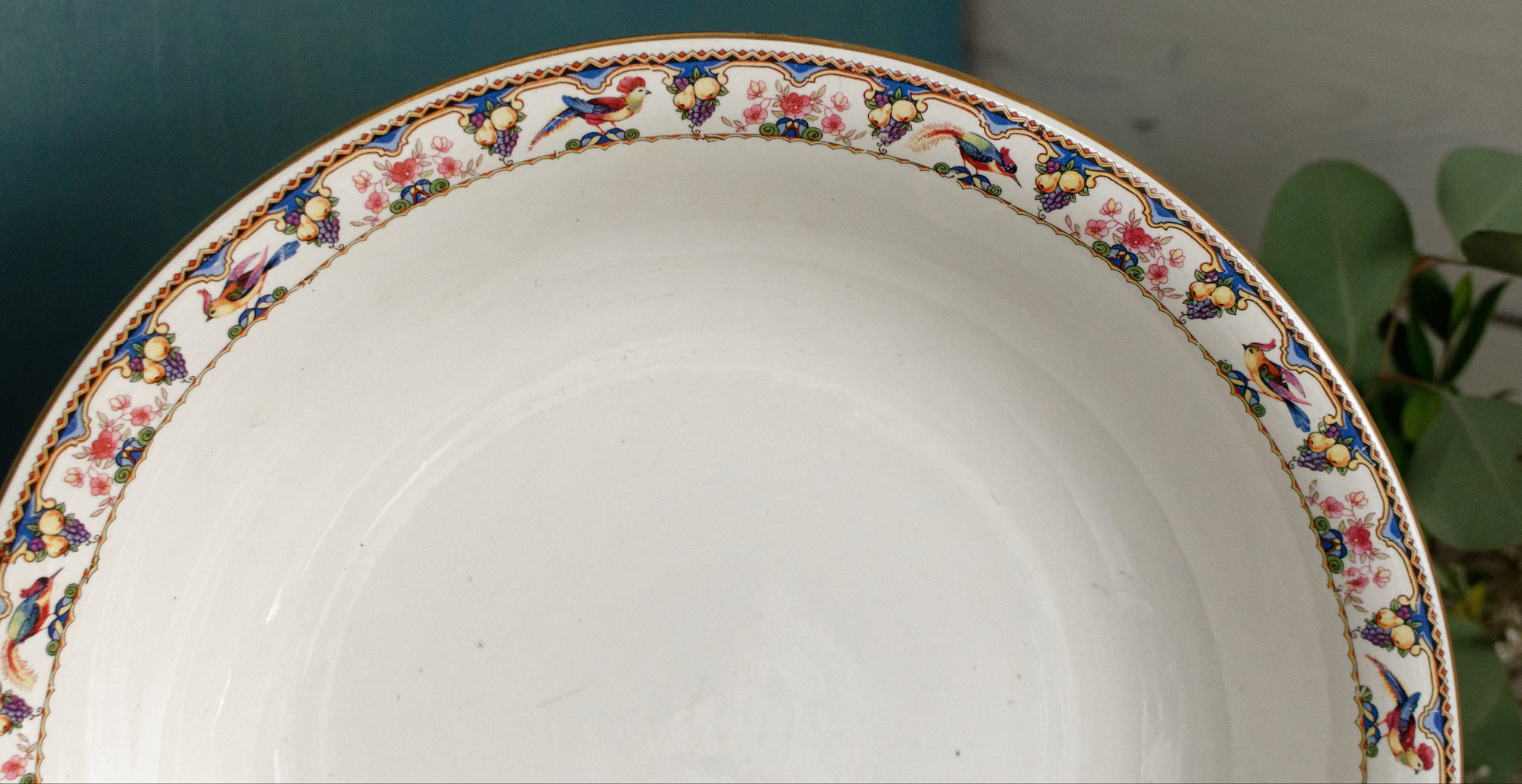 素敵な素朴なヴィンテージの状態。経年と頻繁な使用を考慮すると、いくつかのパターンのにじみ、緑色のインクマーク/表面の特定の領域の大きな退色、製造マークと表面の斑点、表面の製造/グレージングマークなど、美しい欠陥や装飾的な傷があります。保護釉薬の磨耗のエッジの周囲、またはワニスのない小さな跡(表面が滑らかではない)、表面のひび割れや変色の領域、作品の底部の内側に欠けのある領域が1か所ありますが、これはこれです。写真にあるように、作品の機能を妨げるものではありません(展示時には見えません)。ご不明な点がございましたらお問い合わせください。 ZOOMを使用してプレートの詳細と状態を詳しく確認してください。