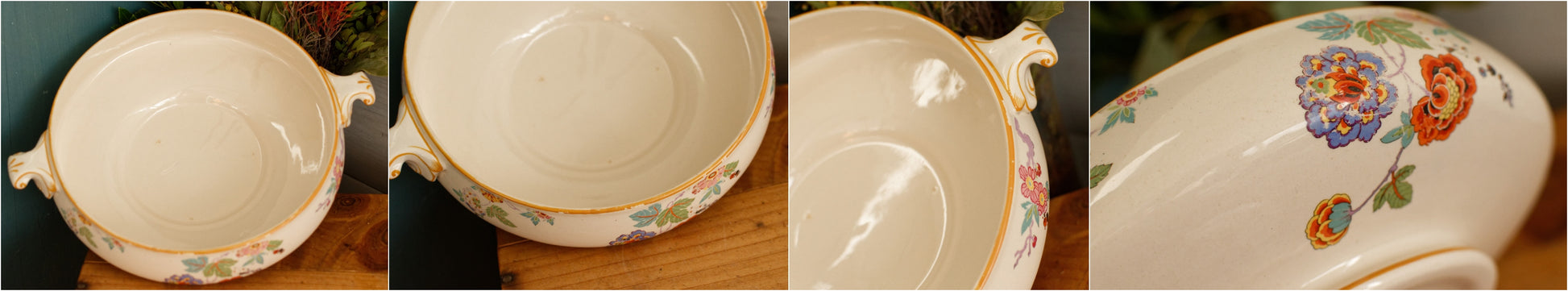 English Vintage Ironstone Polychrome Covered Serving Tureen ~ Made in England 848